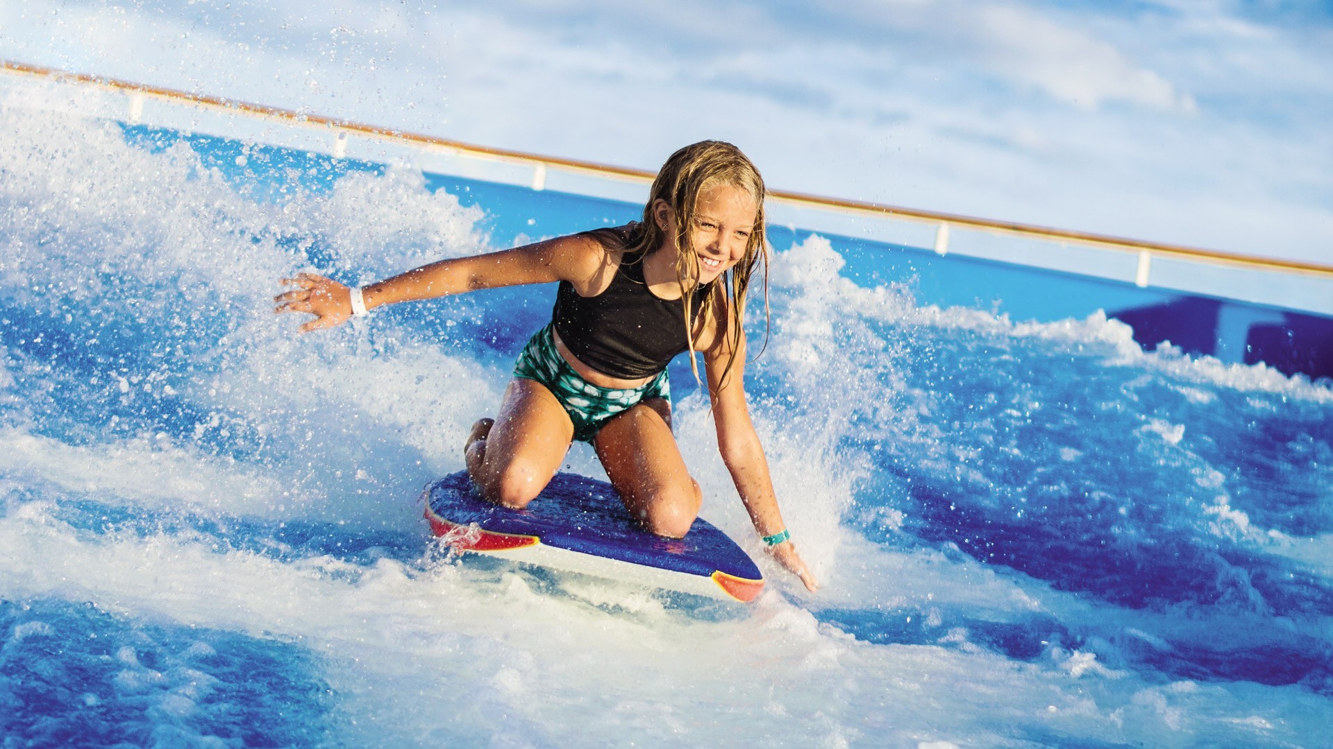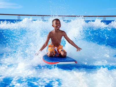 Carve up prime waves all day on the FlowRider®*, a 40-foot-long surf simulator that lets guests tame 30,000 gallons of rushing waves. Whether you prefer to ride upright like a pro, coast on your belly boogie-style, or watch every wipeout from the sidelines, you’ll find you’re always in for a splashing good time on this Oasis Class cruise ship favorite.