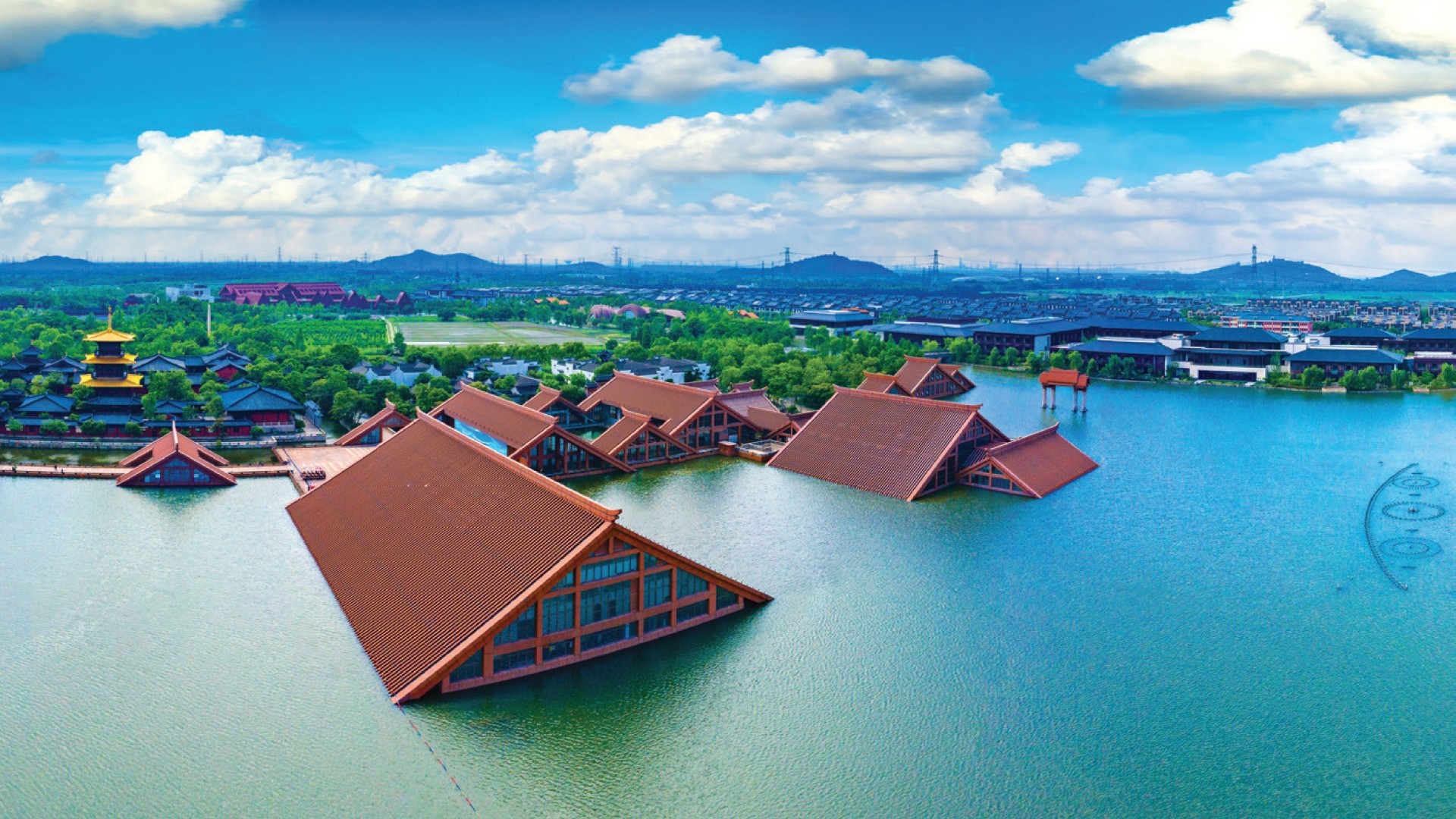 Jinji Lake Scenic Area - It is an open national 5A-level tourist attraction located in the Jinji Lake Business District of Suzhou Industrial Park. The total area of the scenic area is 11.5 square kilometers, of which the water area is 7.4 square kilometers.