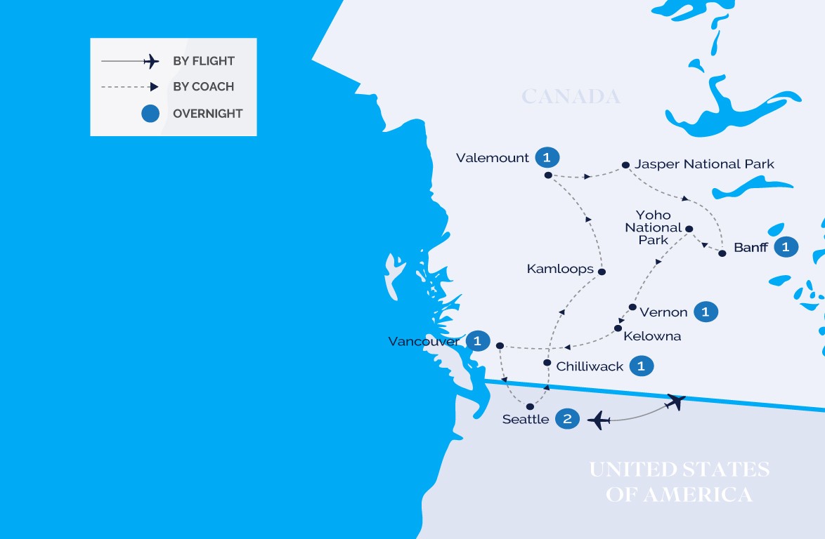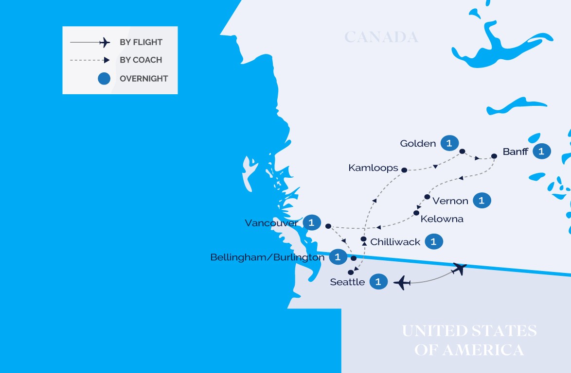 • Vancouver City Tour : Canada Place/New Convention Center, Stanley Park, Totem Park, Gastown, Chinatown, Granville Island, QE Park